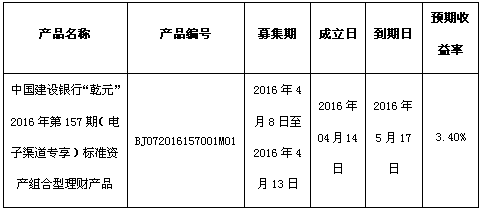 根据与投资者的约定,现将中国建设银行北京市分行理财产品成立情况信息进行披露: