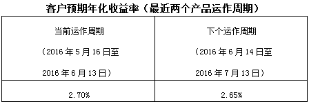 下个运作周期客户预期年化收益率于2016年6月14日(含)开始执行。