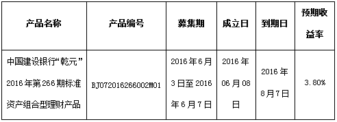 根据与投资者的约定,现将中国建设银行北京市分行理财产品成立情况信息进行披露: