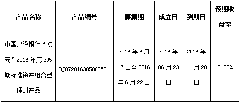 根据与投资者的约定,现将中国建设银行北京市分行理财产品成立情况信息进行披露: