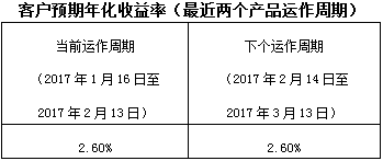 下个运作周期客户预期年化收益率于2017年2月14日(含)开始执行。