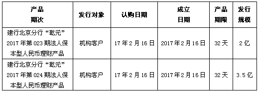建行北京市分行理财产品发行公告2017年2月16日