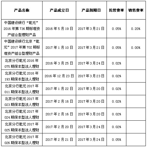 根据与投资者的约定,中国建设银行发行的下列理财产品已经到期并完成资金兑付,现将有关情况公告如下: