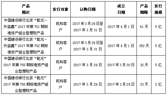 建行北京市分行理财产品发行公告2017年3月29日