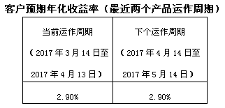 下个运作周期客户预期年化收益率于2017年4月14日(含)开始执行。