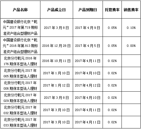 中国建设银行对公类理财产品终止及清算公告2017-4-14