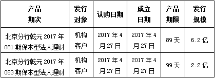 建行北京市分行理财产品发行公告2017年4月27日