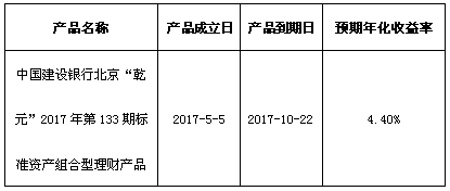关于中国建设银行北京“乾元”2017年第133期标准资产组合型理财产品成立的公告