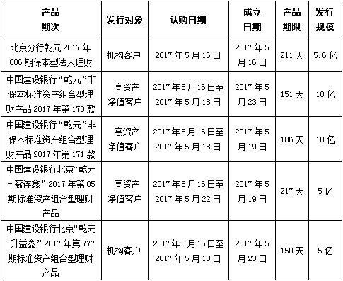 中国建设银行北京市分行定于2017年5月16日发行理财产品,现将相关发行情况公告如下: