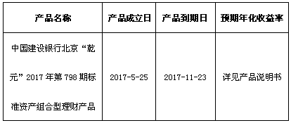 关于中国建设银行北京“乾元”2017年第798期标准资产组合型理财产品成立的公告