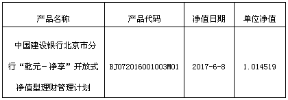 中国建设银行北京市分行“乾元-净享”开放式净值型理财管理计划净值公布如下: