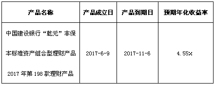 关于中国建设银行“乾元”非保本标准资产组合型理财产品2017年第198款理财产品成立的公告