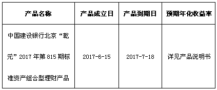 关于中国建设银行北京“乾元”2017年第815期标准资产组合型理财产品成立的公告
