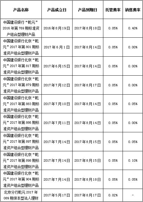 根据与投资者的约定,中国建设银行发行的下列理财产品已经到期并完成资金兑付,现将有关情况公告如下: