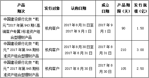 建行北京市分行理财产品发行公告2017年8月30日