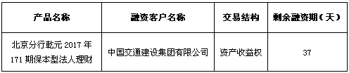 依照《中国银监会关于规范商业银行理财业务投资运作有关问题的通知》(银监发〔2013〕8号)要求,现对本期产品投资非标准化债权资产清单披露如下:
