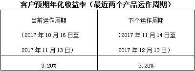 下个运作周期客户预期年化收益率于2017年11月14日(含)开始执行。