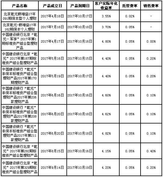 中国建设银行个人类理财产品终止及清算公告2017年10月20日