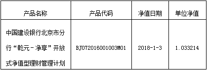 中国建设银行北京市分行“乾元-净享”开放式净值型理财管理计划净值公告