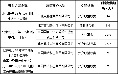 中国建设银行北京分行于2018年4月19日共4只标准资产组合型理财产品进行了非标准化债权资产变更,根据与投资者的约定,现将理财产品存续期情况信息进行披露: