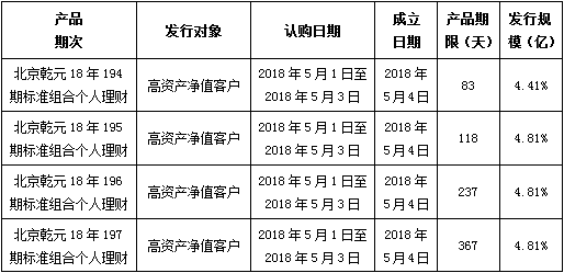 中国建设银行北京市分行定于2018年5月1日发行理财产品,现将相关发行情况公告如下: