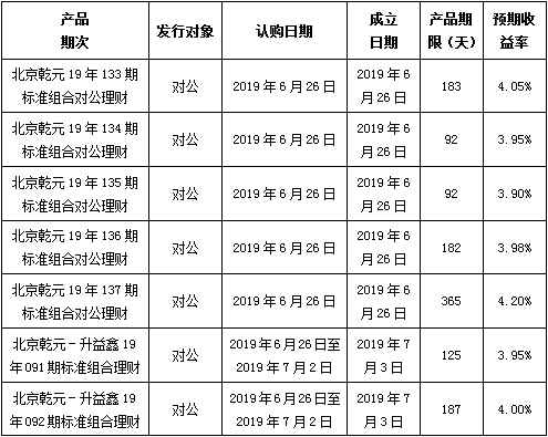 建行北京市分行理财产品发行公告2019年6月26日