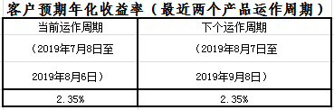 中国建设银行拟对本产品的客户预期年化收益率不作调整,详见下表:
