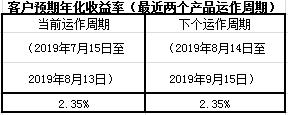 下个运作周期客户预期年化收益率于2019年8月14日(含)开始执行。