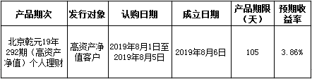 中国建设银行北京市分行定于2019年8月1日发行理财产品,现将相关发行情况公告如下: