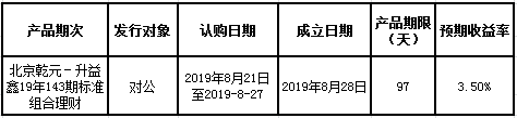 中国建设银行北京市分行定于2019年8月21日发行理财产品,现将相关发行情况公告如下: