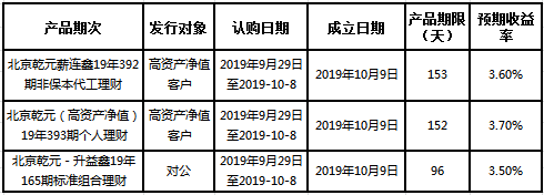 建行北京市分行理财产品发行公告2019年9月29日