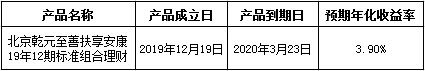 理财产品非标资产披露及资产质量变化公告2019年12月19日