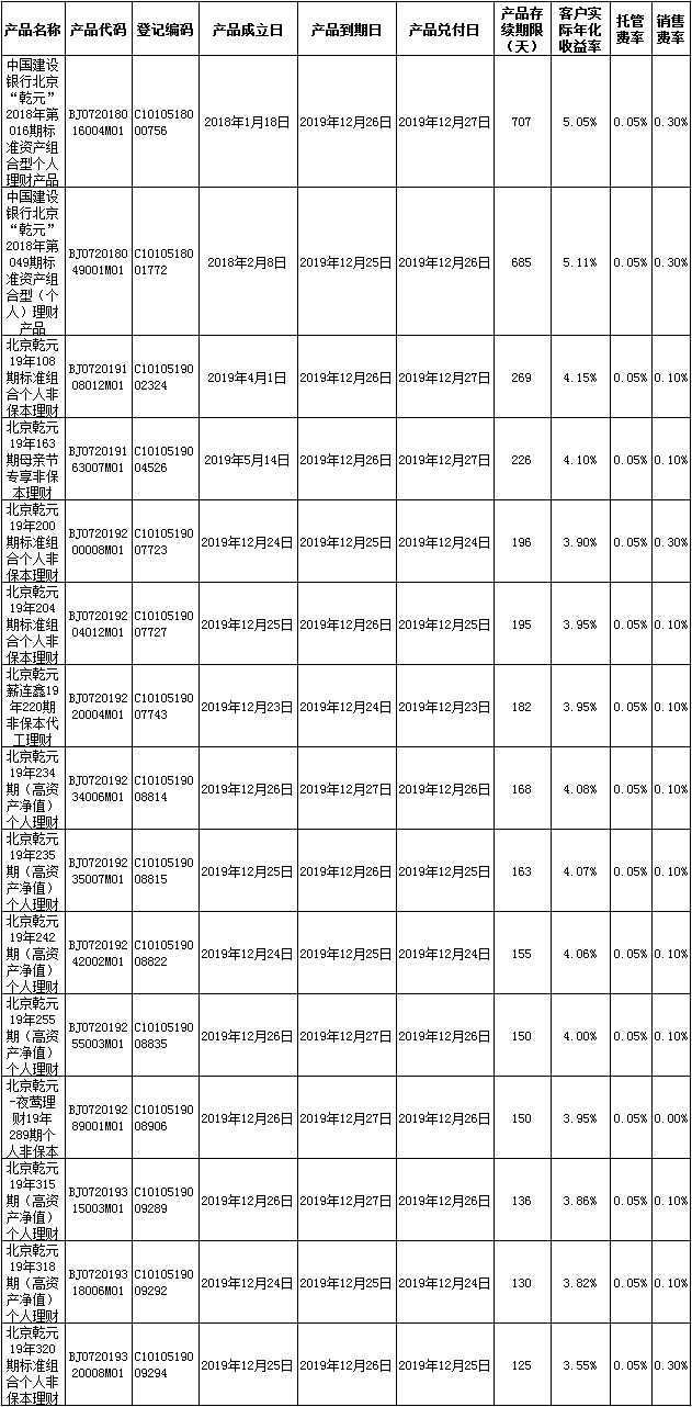 中国建设银行理财产品终止及清算公告2019年12月27日