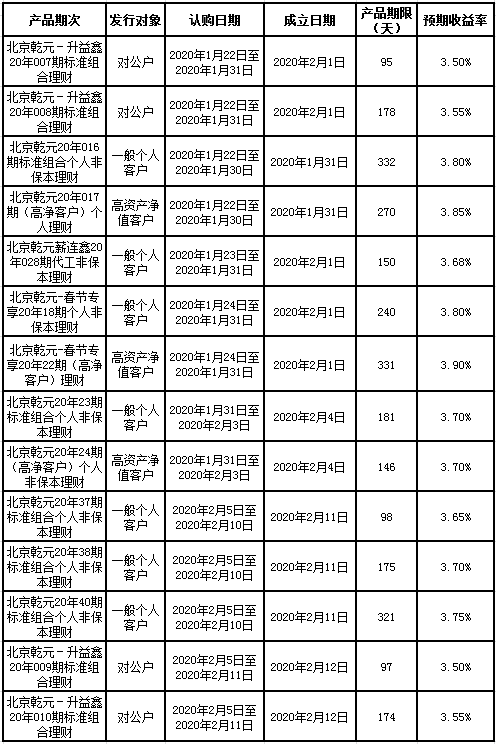 建行北京市分行理财产品发行公告2020年2月7日