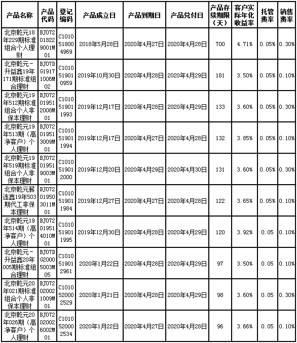 中国建设银行理财产品终止及清算公告2020年5月1日