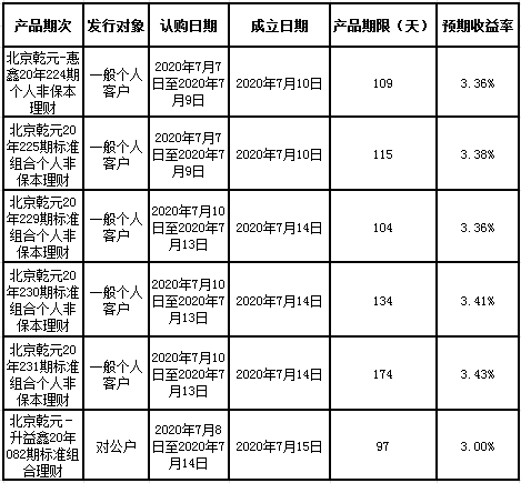 建行北京市分行理财产品发行公告2020年7月13日