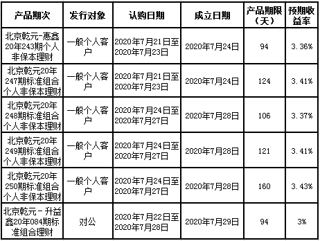中国建设银行北京市分行定于2020年7月20日至2020年7月24日发行理财产品,现将相关发行情况公告如下: