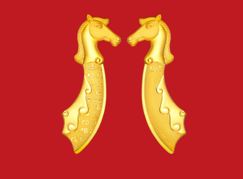 “刀”谐音“到”马头配合祥云以及百福刀,寓意:马到福到,马到功成,事业顺风顺水。
