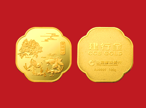 金章正面由祥云图案、富贵牡丹及水中嬉戏的三条活泼可爱的金鱼组成,寓意“金玉满堂、富贵有余、鸿运当头”,集聚鸿运、富贵于一体,有吉祥、美好之意。