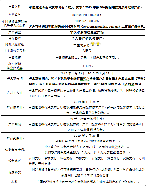 中国建设银行重庆市分行“乾元-扶享” 2019年第004期精准扶贫系列理财产品风险揭示书和说明书