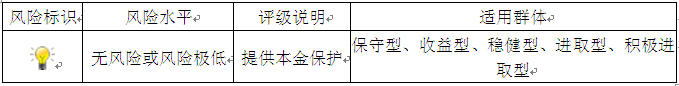 在您选择购买理财产品前,请注意投资风险,仔细阅读理财产品销售文件,了解理财产品具体情况。客户应在详细了解和审慎评估该理财产品的资金投资方向、风险评级及预期收益等基本情况后,自行决定购买与自身风险承受能力和资产管理需求匹配的理财产品。理财产品管理人提醒客户应本着“充分了解风险,自主选择购买”的原则,谨慎决策,自愿将其合法所有的资金用于购买本产品,在购买本产品后,客户应随时关注本产品的信息披露情况,及时获取相关信息。中国建设银行不承担下述风险:注:本风险评级为中国建设银行内部评级结果,该评级仅供参考,不具备法律效力。